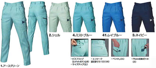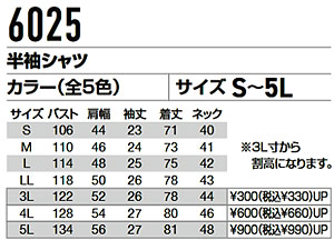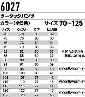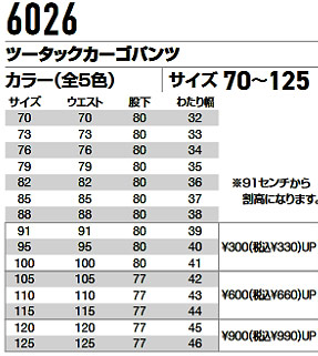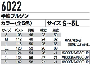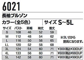 6021ブルゾン 6022半袖ブルゾン 6023長袖シャツ 6025半袖シャツ 6026カーゴパンツ 6027パンツ 商品番号