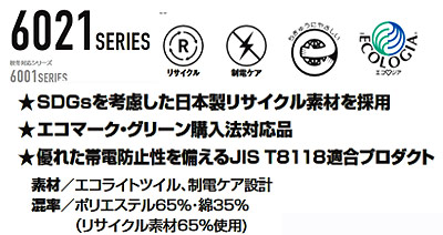 春夏バートル6021シリーズ 秋冬対応商品≫≫6001シリーズ 商品番号