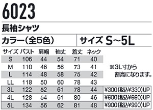春夏四季バートル 6023 LONG SLEEVES SHIRT