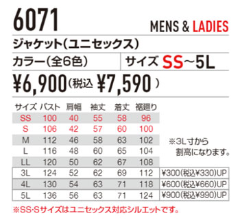 バートル秋冬 6071JACKET 6colors MENS & LADIES ジャケット(ユニセックス)