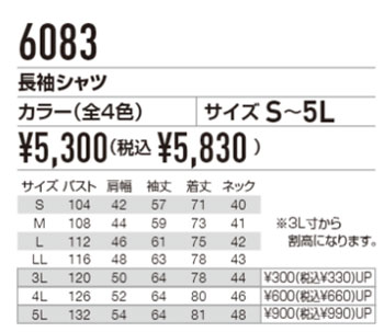 6083LONG SLEEVES SHIRT 4colors長袖シャツ