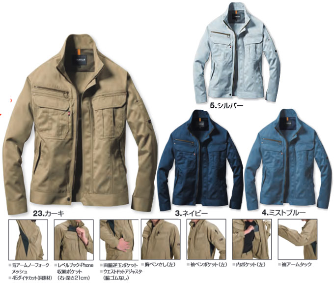 春夏バートル 混率/ポリエステル65% ・ 綿35% カラー/ 23.カーキ 3.ネイビー 5.シルバー サイズ/S-5L 購入サイト s-LL 3L 4L 5L |