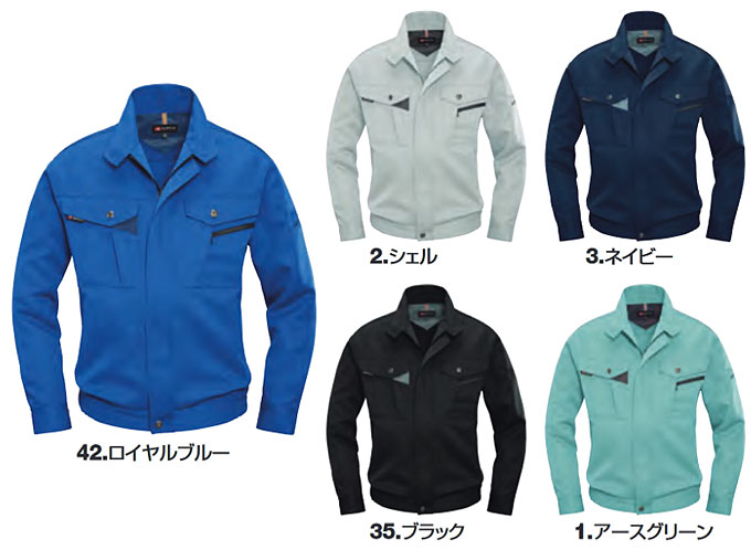 春夏バートル 7061長袖ブルゾン 素材/ソフトトロピカル、超吸水速乾、防汚加工、制電ケア設計 混率/ポリエステル80% ・ 綿20% 生地の厚み 1/6 カラー/ 42.ロイヤルブルー 1.アースグリーン 2.シェル 3.ネイビー 36.ブラック サイズ/S-5L 購入サイト S-LL、 3L 4L 5L |