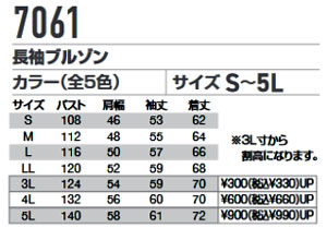 春夏バートル 7061シリーズ 秋冬対応商品≫7071シリーズ 商品番号