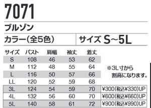 秋冬バートル7071 SERIES 春夏対応商品≫7061シリーズ