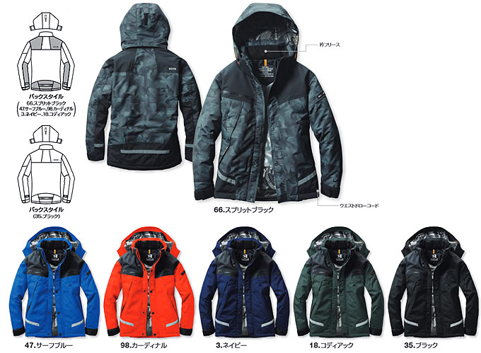 色/ 66.スプリットブラック、 47.サーフブルー、 98.カーディナル、 3.ネイビー、 18.コディアック、 36.ブラック