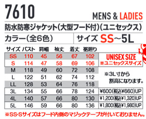 ・7610W.JACKET・防水防寒ジャケット(大型フード付)(ユニセックス)
