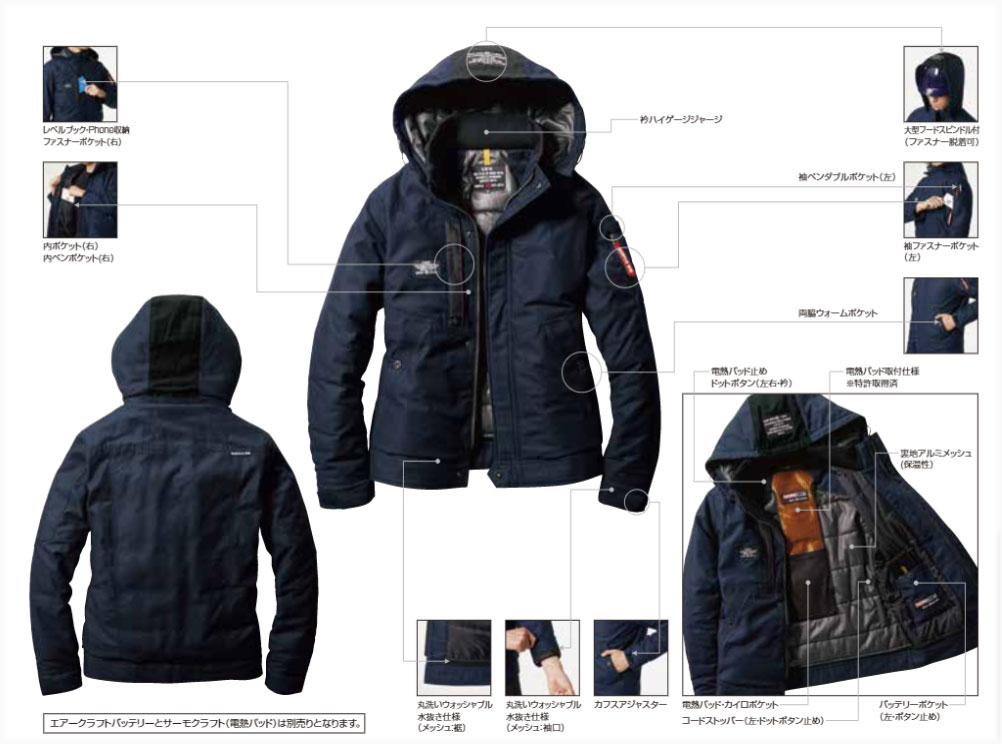 綿100%アーミーサテンを採用しミリタリー要素を注入したハードワーク対応防寒ギア サーモクラフト(電熱パッド)